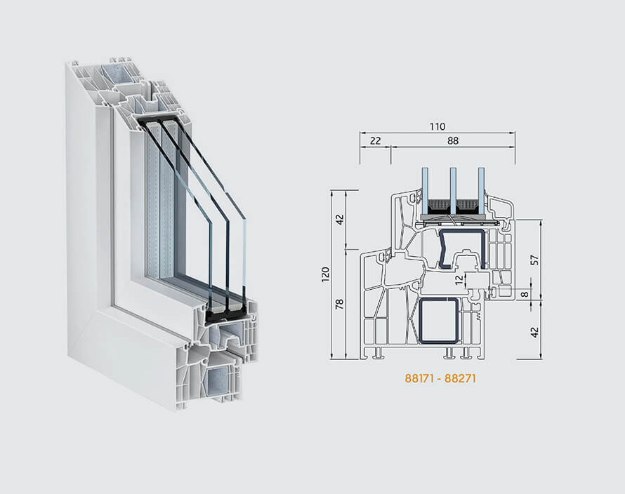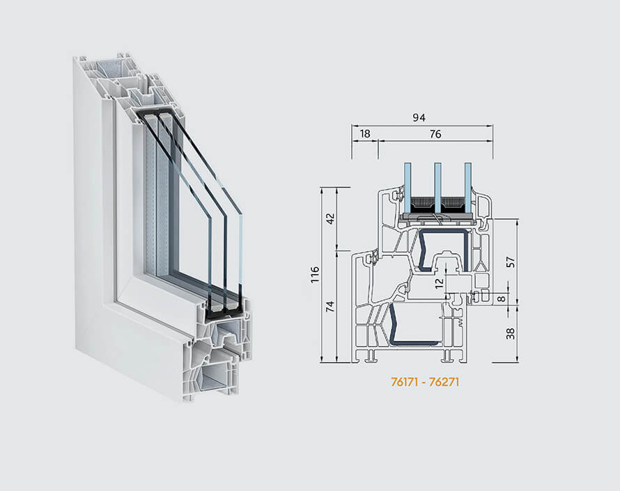 - Large glazing spectrum up to 60 mm thickness for the use of triple glazing or special functional glass